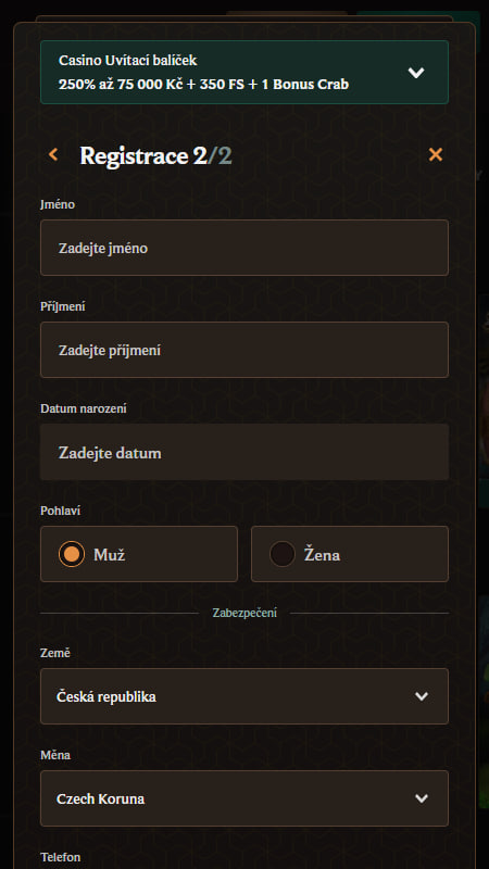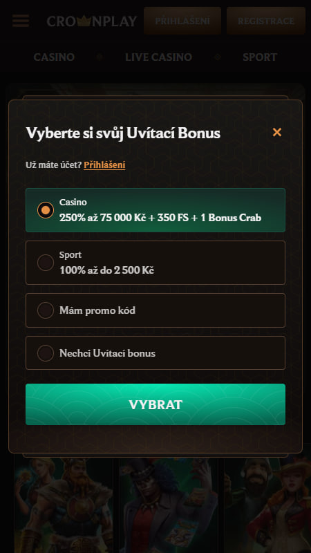 | 💰 Uvítací bonus | 250% až do 75 000 Kč + 350 free spinů + Bonus Crab |