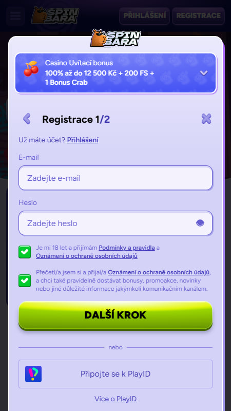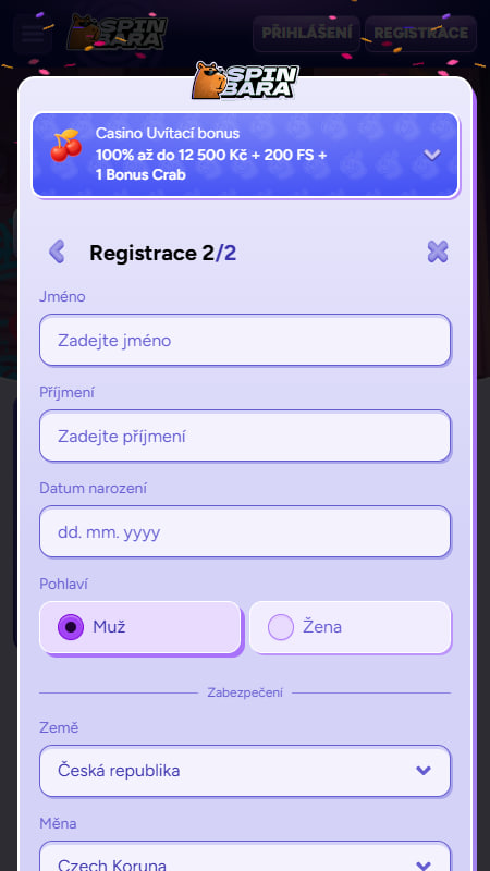 Registrace herního účtu v casinu Spinbara je velmi rychlá. Celý proces je logický a projdete jím bez problémů. Nám to trvalo jen pár minut.