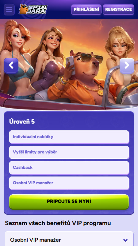 Spinbara má připravený VIP program. Má 5 úrovní a můžete získat například vyšší cashback, vyšší platební limity nebo vlastního VIP manažera účtu. Čím vyšší úrovně dosáhnete, tím více výhod můžete získat. Tento VIP program je podle nás velmi povedený a má dobré benefity. Zapojit se do něj vás nebude nic stát.