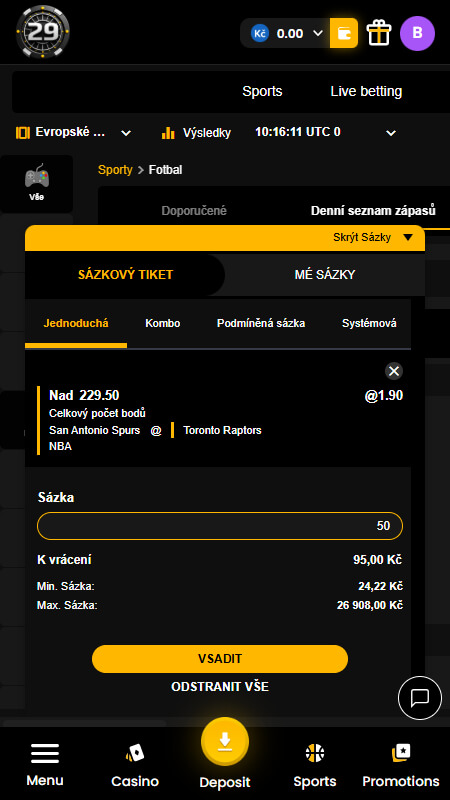 Sázení samotné je na 29 Black maximálně jednoduché. Stačí vložit vaše sázkové příležitosti na tiket a ten potvrdit. A to je vše, nyní máte vsazeno a stačí počkat na výsledek vaší sázky. 29 Black tak kombinuje přehlednost, jednoduchost a rychlost, což velmi oceňujeme.