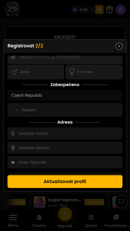 Pro založení sázkového účtu v 29 Black stačí projít velmi snadným procesem. Sázet můžete začít během chvíle a vše je v češtině. Ukážeme vám, jak si zde založit sázkový účet: