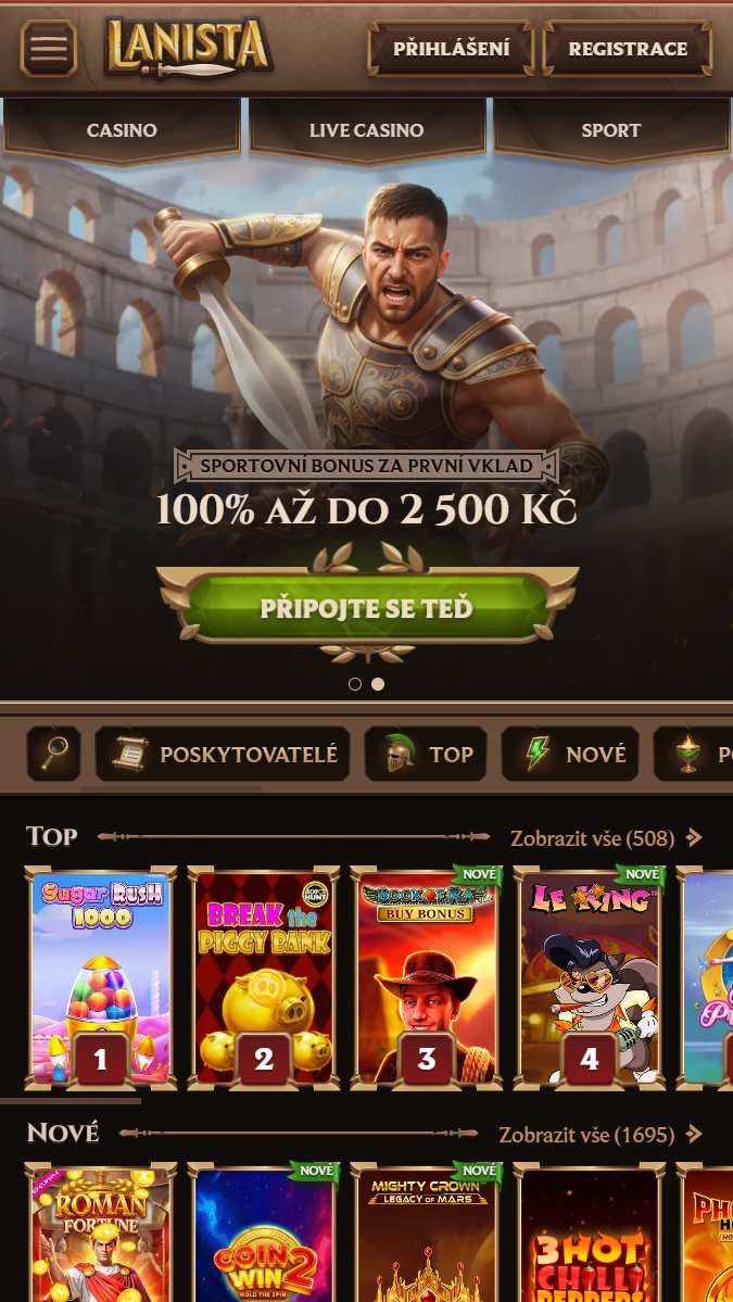 Sázková kancelář Lanista je moderní platforma, kterou provozuje zkušená společnost Dreamline Ventures SRL a která funguje od roku 2025. V české lokalizaci nabízí více než 2 000 sázek denně v předzápasové i live nabídce, a to jak na desktopu, tak v mobilně optimalizovaném rozhraní. Tato recenze se podívá na kompletní nabídku kurzových sázek, bonusových výhod a možnosti hrát jak ve webovém, tak mobilním rozhraní pohodlně z vlastní kapsy.