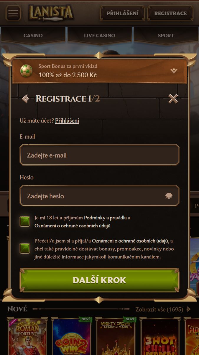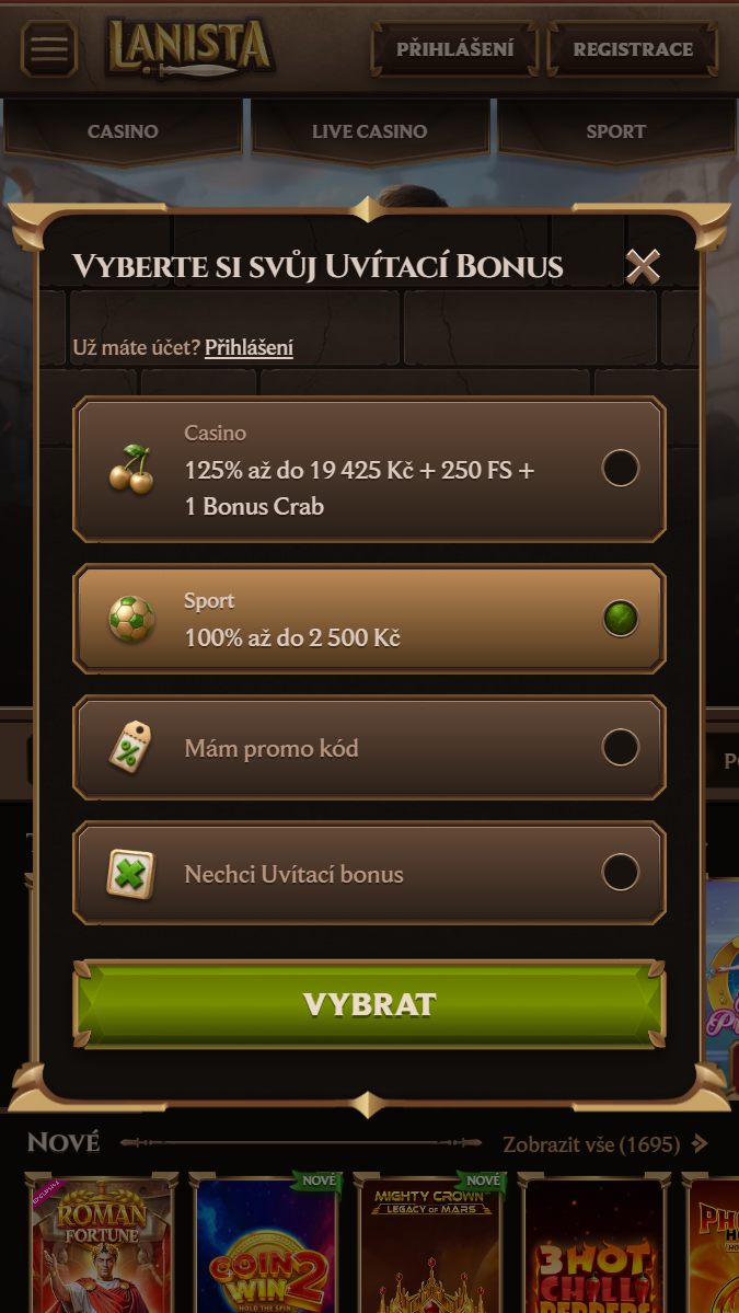 | 🎁 Uvítací bonus | 100 % do 2 500 CZK |