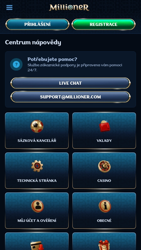Pro nastavení sebe-vyloučení je možné jednoduše kontaktovat zákaznickou podporu Millioner přes live chat.