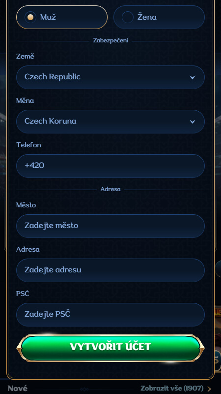 V pravém horním rohu klikněte na zelené tlačítko “Registrace” pro zobrazení registračního formuláře.