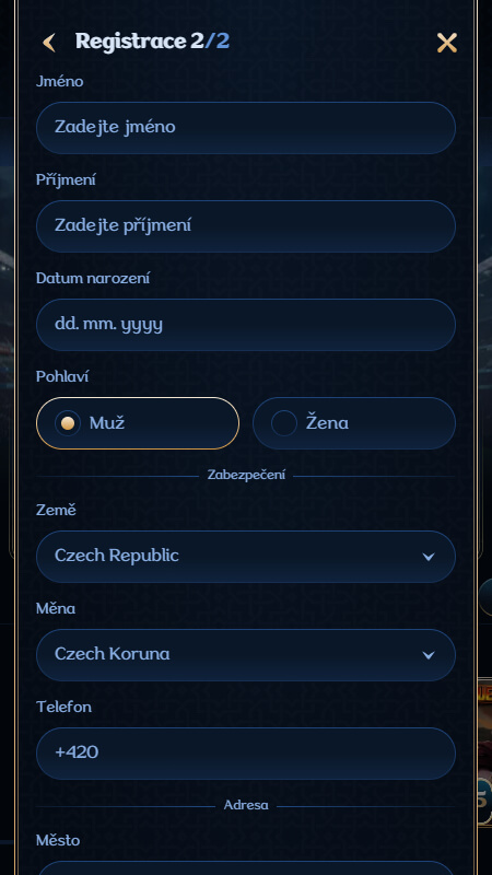 Vyplňte všechny zbývající informace o sázkaři a účtu, například jméno a příjmení, preferovanou podkladovou měnu a kontaktní údaje.