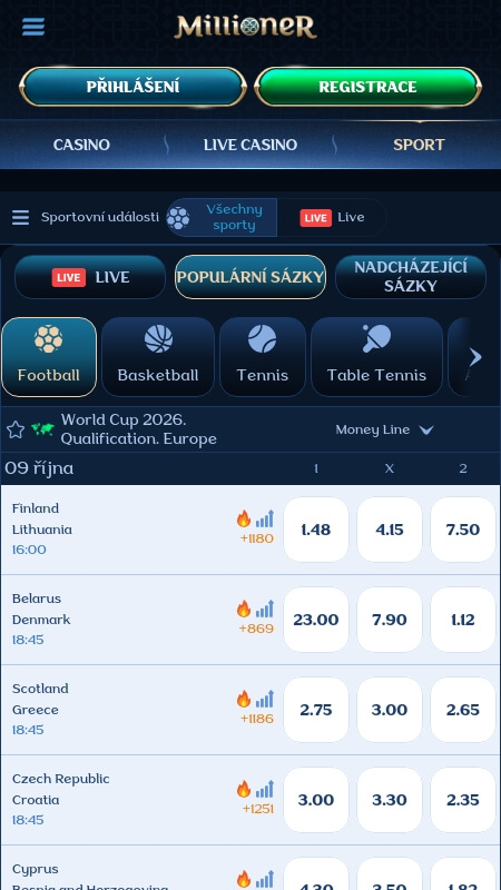 Sportovní sázky přes Millioner